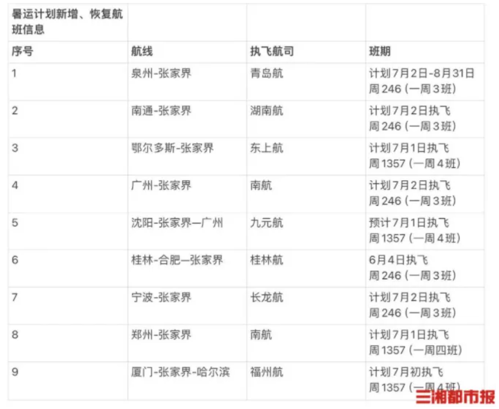 據(jù)悉,張家界機(jī)場執(zhí)行夏航季航班計(jì)劃以來,累計(jì)運(yùn)營航線38條,其中國內(nèi)航線27條,國際及地區(qū)航線11條;通航城市42個(gè),其中國內(nèi)31個(gè),國際及地區(qū)11個(gè)。