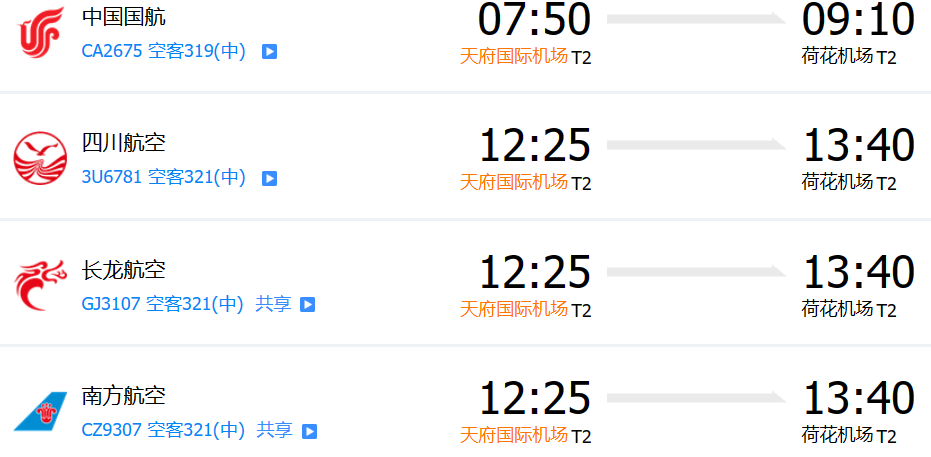 成都天府國際機(jī)場每天都有直飛張家界荷花機(jī)場的航班,具體參考如下:
