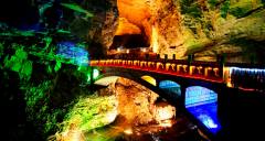 黃龍洞是張家界武陵源風(fēng)景名勝中著名的溶洞景點(diǎn),因享有“世界溶洞奇觀”“世界溶洞全能冠軍”“中國最美旅游溶洞”等頂級(jí)榮譽(yù)而名震全球?,F(xiàn)已探明洞底總面積10萬平方米;洞體共分四層,洞中有洞、洞中有山、山中有洞、洞中有河。經(jīng)中外地質(zhì)專家考察認(rèn)為:黃龍洞規(guī)模之大、內(nèi)容之全、景色之美,包含了溶洞學(xué)的所有內(nèi)容。黃龍洞以其龐大的立體結(jié)構(gòu)洞穴空間、豐富的溶洞景觀、水陸兼?zhèn)涞挠斡[觀光線路獨(dú)步天下。