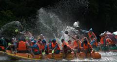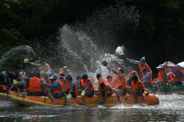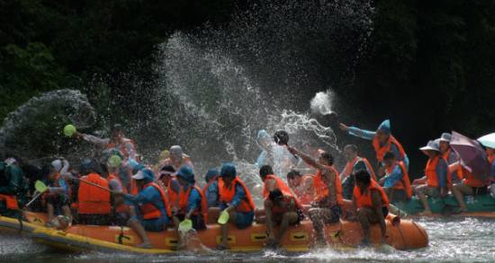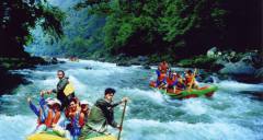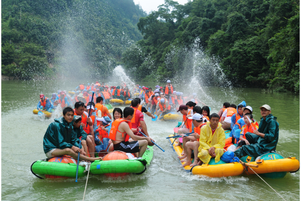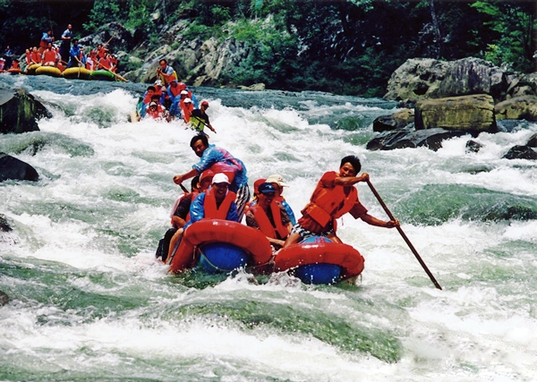 被譽為“中國生態(tài)第一漂”,位于東江湖最南端的黃草鎮(zhèn)境內,全程26千米。從龍王廟起漂點到燕子排終漂點整個落差75米,急灘108個,漂流河道兩巖有保存比較完好的原始次森林,奇巖怪石林立,古樹遮天蔽日,老藤攀崖附壁,飛鳥跳躍枝頭。東江漂流以其灘多浪急落差大、水碧石怪魚奇怪、兩岸森林植被佳而 聞名,是國內目前最具探險的融歷險、探幽、獵奇、拾趣為一體的漂流去處。