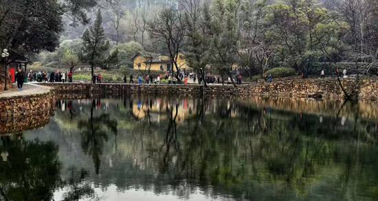 滴水洞長約2.8公里,洞內有小溪,曲曲彎彎,幽壑口朝東北而開。小溪沿岸林木繁茂,挺拔的松林中夾雜著茂密的楠竹,而上百種野花漫山遍野地生長著。這里的珍貴林木有銀杏、女貞、鐵樹等30多種,這里的花卉有映山紅、臘梅、芙蓉、月季、菊花等上百種,這里的珍貴藥材有金銀花、甘草、沉香、白果等20余種,境幽景優(yōu)是滴水洞幽壑的一大特點,人在景中如置身仙境。滴水洞正式對外開放,并陸續(xù)修造了許多旅游景點與設施。滴水洞門樓,依山造勢,頂部垂著深灰色的石鐘乳,中覆著紫藤、絡石、烏蘿,古趣盎然,上題“滴水洞天”4個朱紅大字。門樓建在水濱崖邊,韶山水庫波光粼粼,巖邊松柏勁拔,給游人以先聲奪人之感;加上守衛(wèi)者仍保留全副武裝,仿佛毛澤東仍在洞中安歇。進得門樓,臨水一亭翼然,倚欄俯仰,只見山風拂面;又見游道右側山巖石壁上,倏然從松樹間躍出靈氣飛動的“滴水洞”3字,正是毛澤東的手跡。道邊的黑色山體上,嵌著一塊塊名人留言的青石碑。漫步滴水洞游道,仿如置身詩情畫意中,松與竹,青蔥得癢人心肺,山花、野鳥、人面、歌聲,使人陶醉。