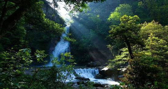 神農(nóng)谷國(guó)家森林公園內(nèi)森林茂密,小氣候環(huán)境優(yōu)越、空氣清新、負(fù)離子含量高,更能促進(jìn)人體身心健康。澗深谷幽,一巨石雄踞路頭,繞石而進(jìn),豁然開(kāi)朗,瀑布自48.2米的絕壁上轟鳴而下,水珠飛濺,如滾珠噴雪,迷霧茫茫,凝視上端,有如輕紗飄蕩,又如煙霧翻滾,其趣無(wú)窮。
